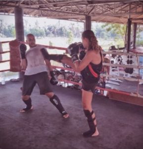 Tip for the people who want to lose weight: “DO NOT SKIP RUNNING”. Be strong and remember why you came to do it, get up and go for it. I promise you, if you run every session you will see amazing results at the end. Keep pushing yourself this also goes for the Muay Thai trainer, Hit the bag as hard as you can, it seems boring but it’s a must for your muscle memory so that even when you’re out of breath your muscles will now automatically how to hit, HARD!